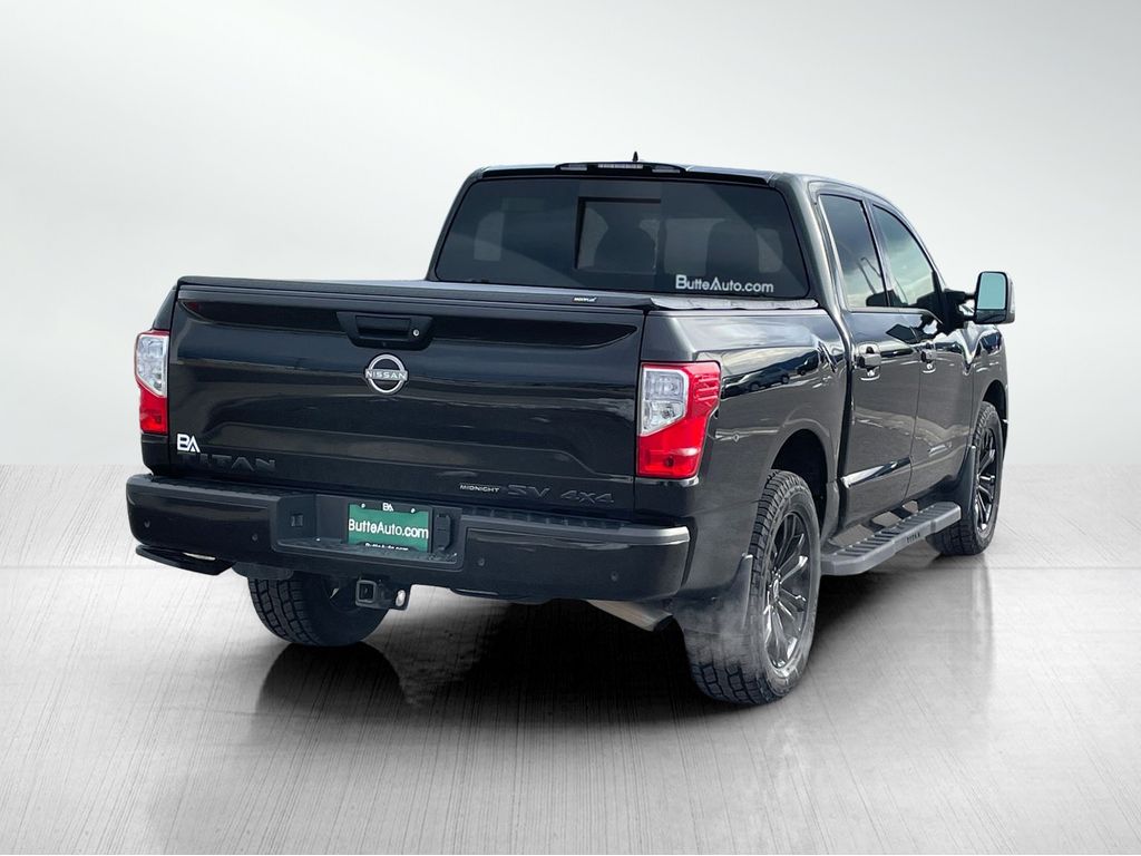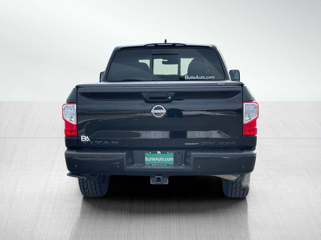 SV Convenience Package: NissanConnect Services; Leather-Wrapped Steering Wheel; Auto-Dimming Rearview Mirror; Front and Rear Parking Sensors; 2 Illuminated USB-A Ports in Back of Center Console; Rear HVAC Vents; Dual Illuminated Vanity Mirror Front Sun Visors; Intelligent Key System; Power Sliding Rear Window with Defogger; 120V/12V Outlets in Back of Center Console; Remote Engine Start on Key Fob; Mood Light; Dual Zone Automatic HVAC; Overhead Console with Sunglass Holder; Dedicated Cell Phone Holder; Wi-Fi Hotspot; Heated Front Captain's Chairs. SV Midnight Edition Package: Special Liftgate Emblem Treatments; Gloss Black Front Grille Surround; Black Front Bumper; Black Headliner and A-Pillar; Full LED Headlamp; Black Steering Wheel Finishers; 20" X 8" Black Wheels; Black Utility Mirror; P275/60R20 BSW A/S Tires; Front Door TITAN Emblem Delete. SV Utility Package: 120V Outlet in Bed; Utilitrack System with 4 Tie-Down Cleats; LED Tailgate Area Illumination; Rain Sensing Wipers; LED Under Rail Bed Lighting; Flat Floor Function with Tie Down Hooks; Rear Utility Bed Step; Spray-On Bedliner; Auto-Dimming Rearview Mirror with Universal Garage Door Opener; Electronic Locking Tailgate. SV Tow Package: Receiver Hitch; Trailer Light Check Function on Key Fob; 4-Pin/7-pin Wiring Harness Connector (rear Bumper); Heated Manually Extendable Tow Mirrors; Trailer Brake Controller. Midnight Essential Accessory. Bed Assist Grip. Splash Guards. **Equipment listed is based on original vehicle build and subject to change. Please confirm the accuracy of the included equipment by calling the dealer prior to purchase.**